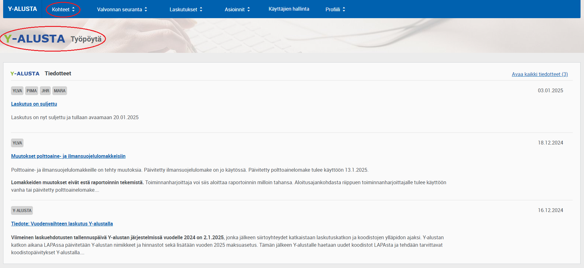 Förstasidan som öppnas efter inloggningen kommer från och med 17.3.2025 att vara vyn Skrivbord i stället för vyn Objektsökning.