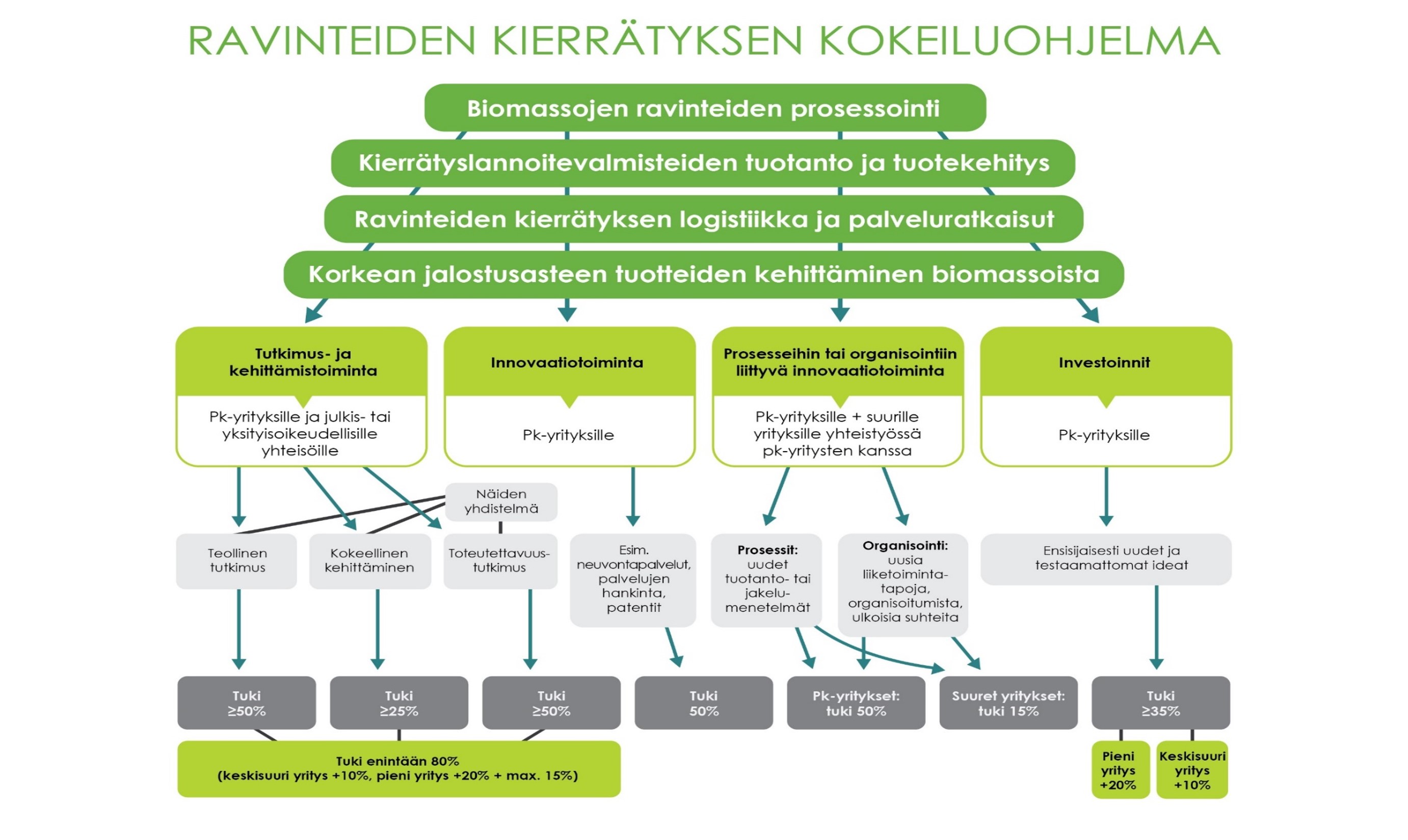 Försöksprogrammets mål är att främja bearbetningen av olika näringsämnen i biomassa så att näringsämnen som är nödvändiga för jordbruket kan tas till vara och utvecklas till exempelvis organiska gödselprodukter eller andra produkter med hög förädlingsgrad.
