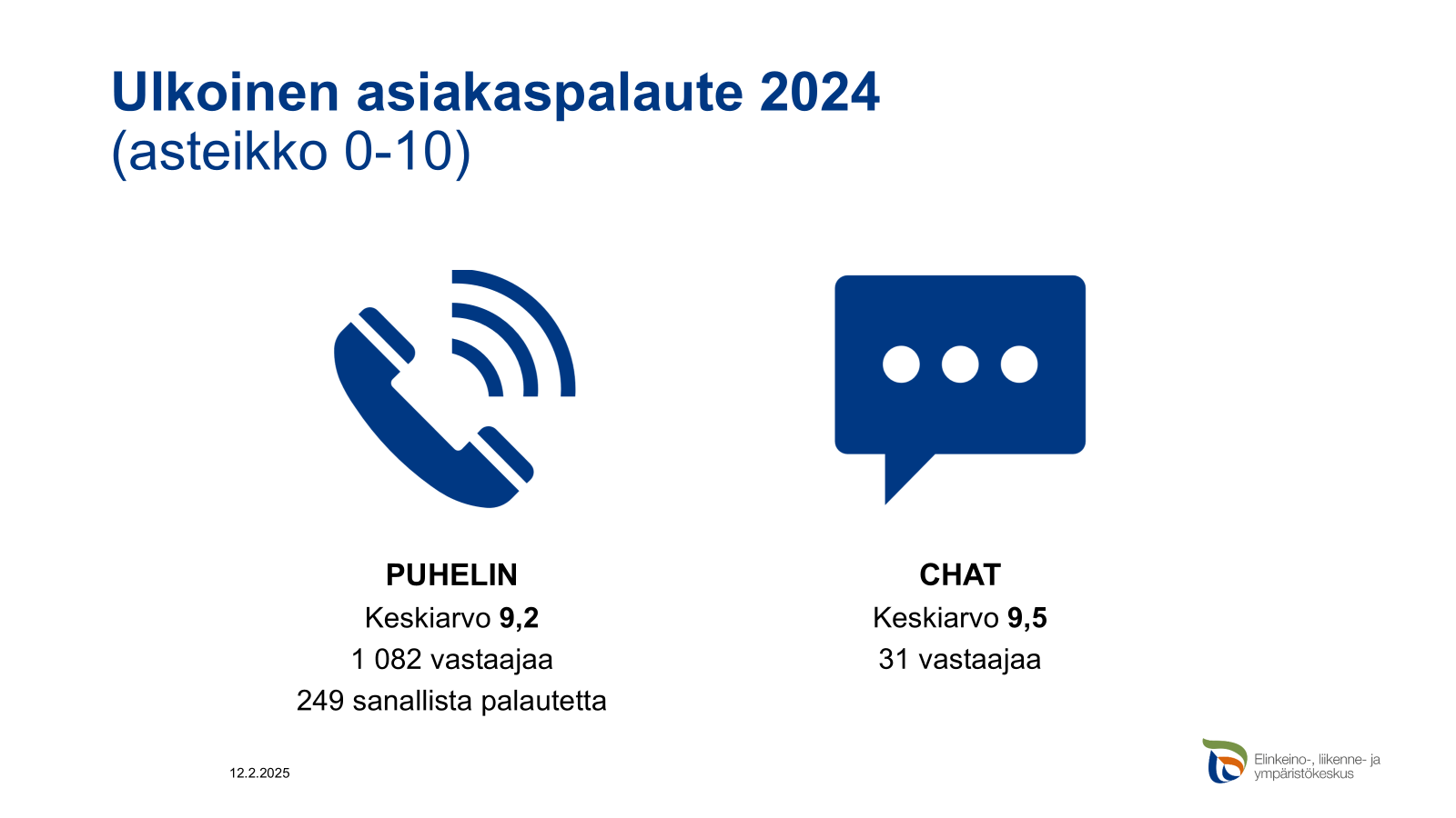 Ympäristöasioiden asiakaspalvelu hoiti vuonna 2024 yhteensä 18 500 yhteydenottoa erinomaisella asiakastyytyväisyydellä (NPS-luku 82).