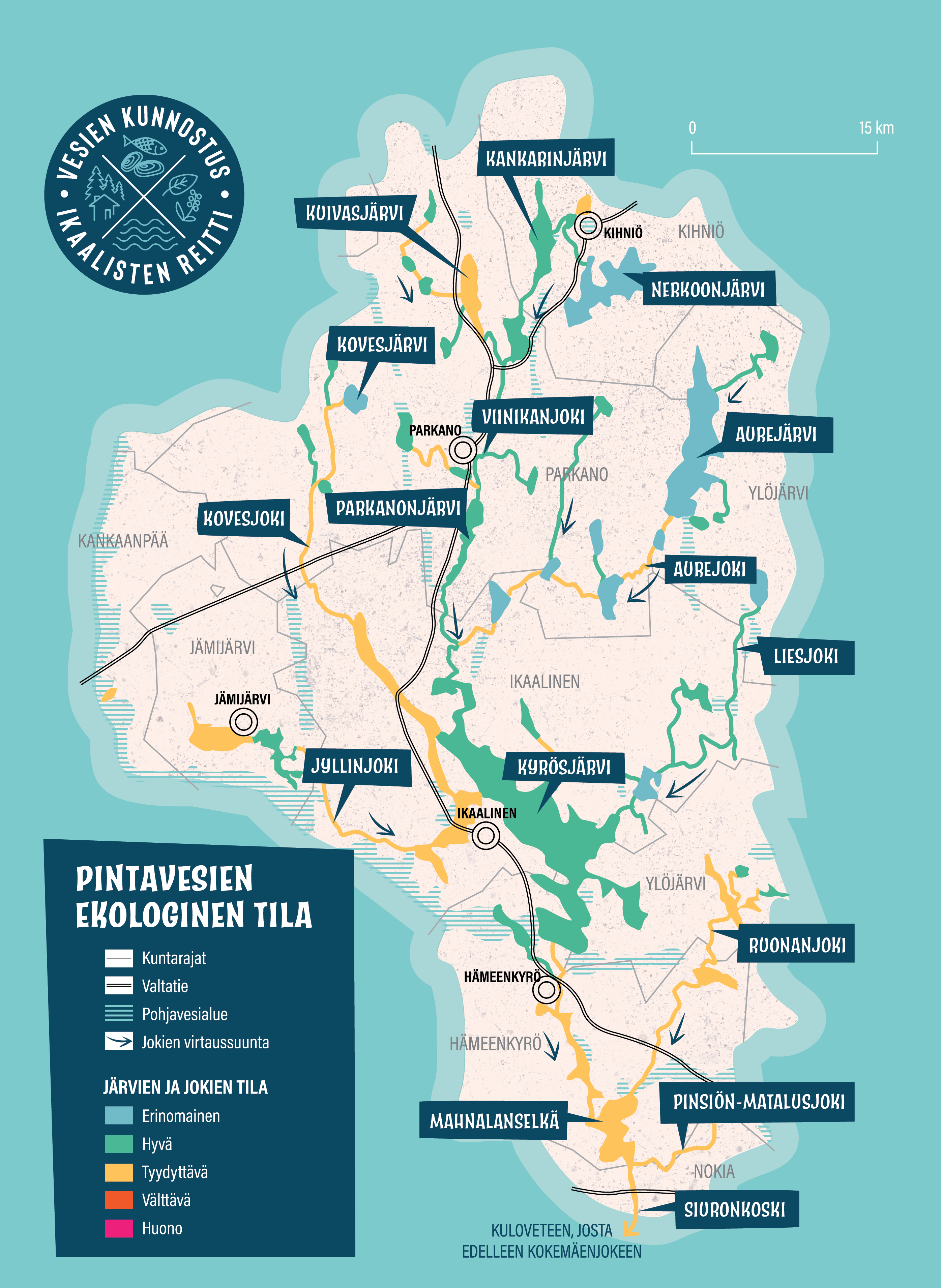 Alla olevassa kartassa esitellään Ikaalisten reitin vesistöjen ekologista tilaa. Klikkaa kuvaa saadaksesi sen suuremmaksi.