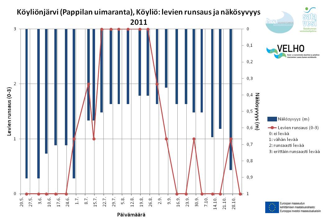 Köyliönjärvi (Pappilan uimaranta), Köyliö: leväseuranta ja näkösyvyys.jpg
