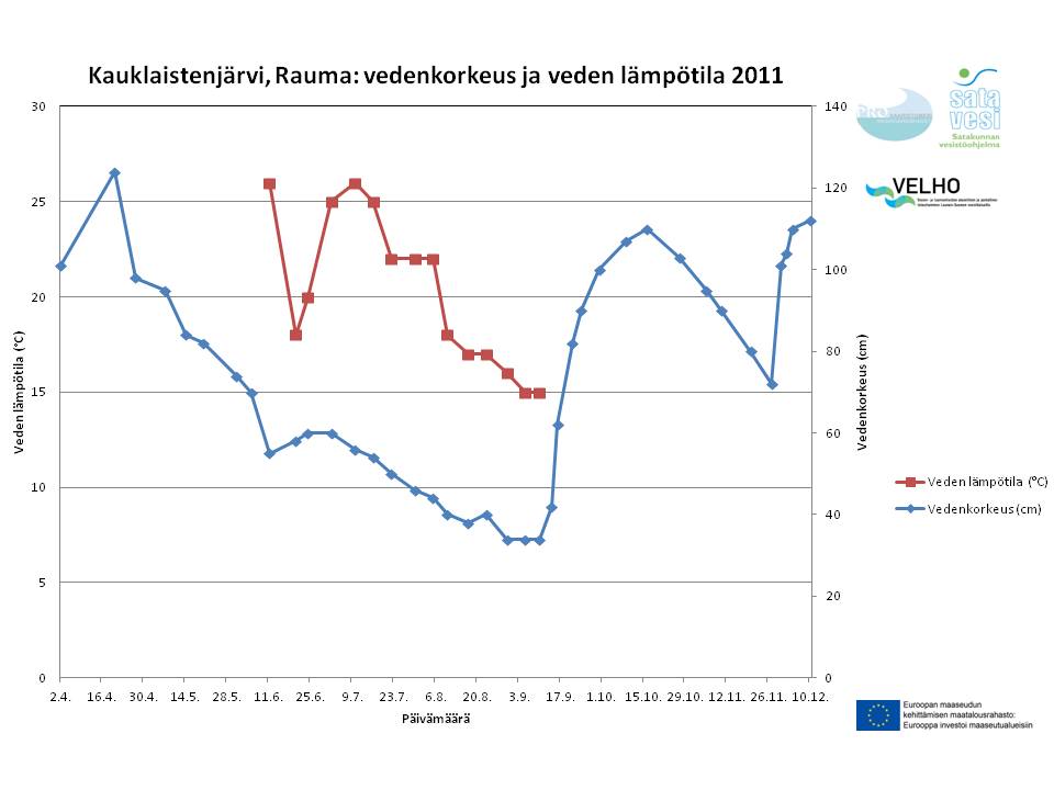 Kauklaistenjärvi, Rauma: veden lämpötila ja vedenkorkeus.jpg