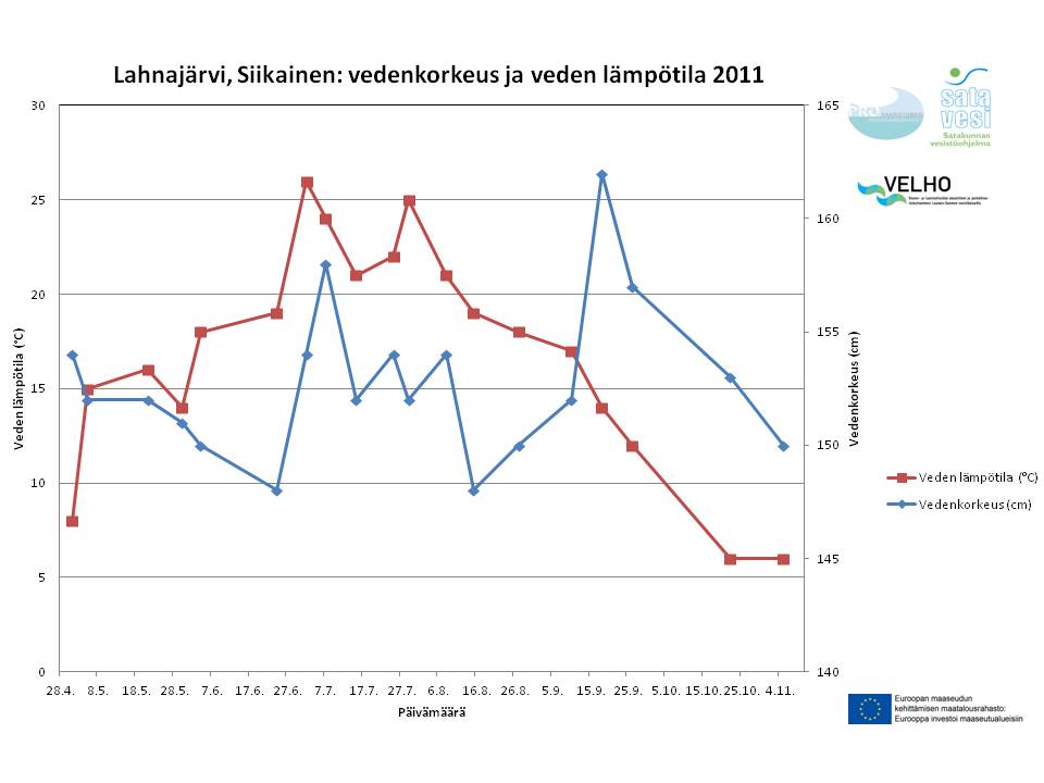 Lahnajärvi, Siikainen: veden lämpötila ja vedenkorkeus.jpg