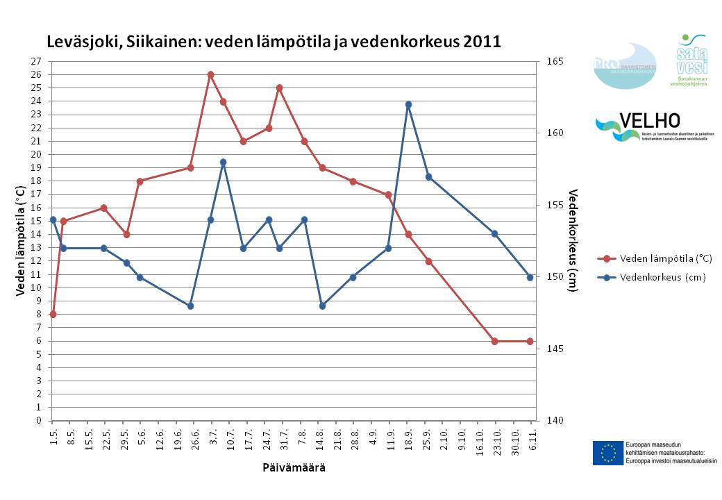 Leväsjoki, Siikainen: veden lämpötila ja vedenkorkeus.jpg