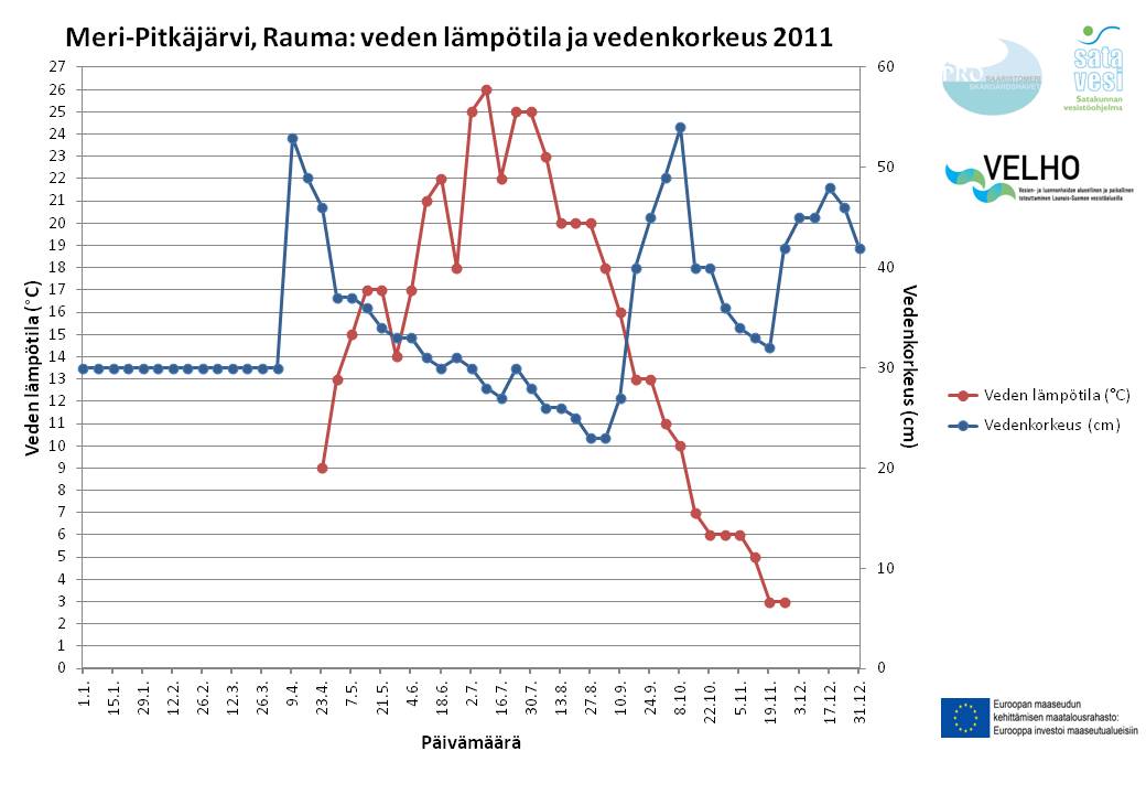 Meri-Pitkäjärvi, Rauma: veden lämpötila ja vedenkorkeus.jpg